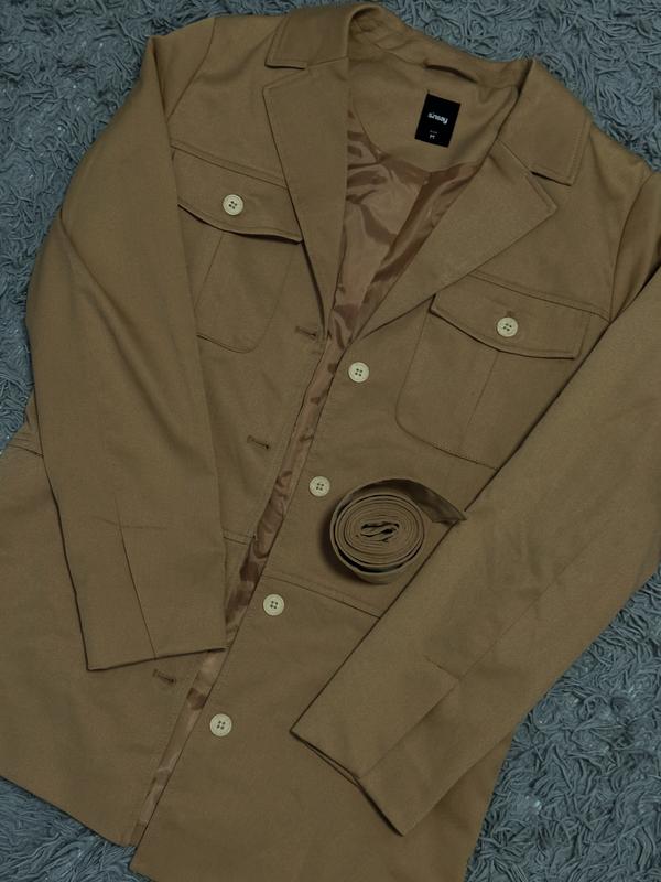 Стильний піджак від бренду Sinsay, розмір M. Колір — світло-оранжевий, ближче до бежевого (у житті трохи світліший, ніж на фото). Фасон — класичний з накладними кишенями та поясом у комплекті. Підійде як для офісу, так і для повсякденних образів.🧡 Стан — новий.
