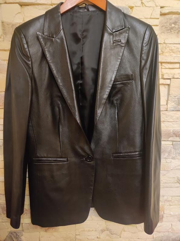 Класичний піджак із якісної ,м"якої ,натуральної шкіри чорного кольору,,застібається на один гудзик, в оригіналі виглядає краще, ніж на фото,стан ідеальний, без дефектів, розмір 46-48,заміри: довжина рукава 62 см, ПОГ 46 см, ширина плечей 39 см, довжина по спинці 67 см,ПОТ 42 см,