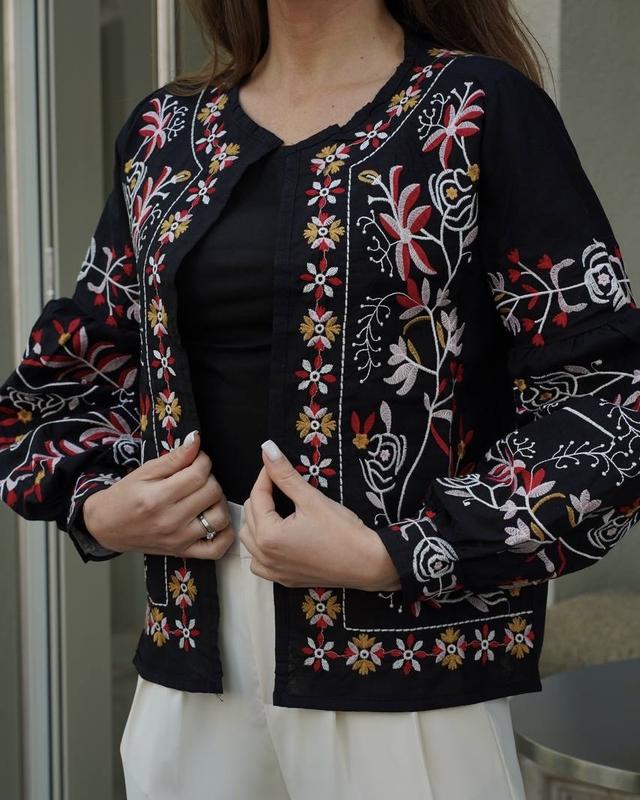 Арт 5050 #жакет вишитий без застібок 80% бавовна , 20% поліестер Розмір : С.М.Л. Туреччина Ог : S - 52 см. М - 53см. L -54см. Довжина: S - 55см. М -55см. L -56см. Рукав: S - 60см М - 60см L -61см