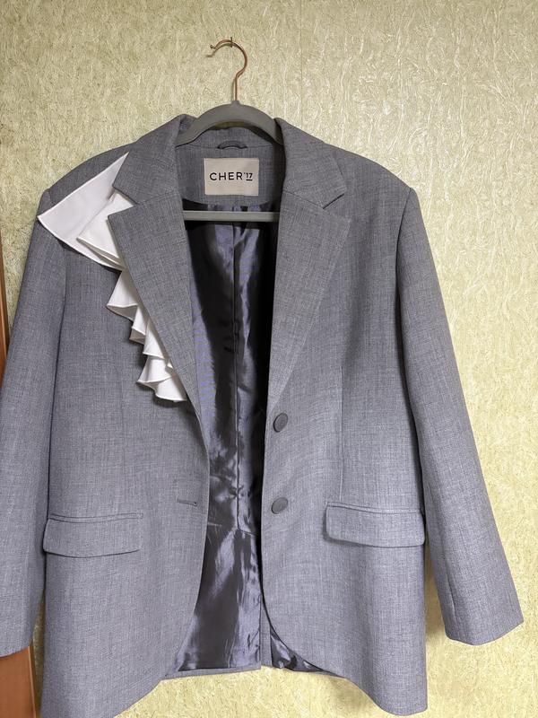 Одягнений 3 рази в гарному стані. Піджак тримає форму та йде оверсайз. Комірець білий відстібається. Maтepіaл ocнoвний: віcкoзa-60%, поліестер-40%
