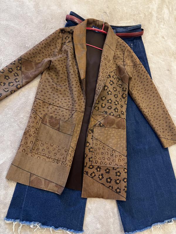 Піджак Італія коричневого кольору, з анімалістичним принтом, теанина під замшу 📍Розмір - S/M 📍Пог-49 📍Довжина-81 📍Плечі -36 📍Рукав -56
