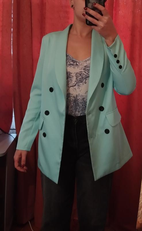 Пиджак одевала всего несколько раз. Имеет пятнышки на рукаве (видно на фото). Все пуговицы родные, не перешивались, не отрывались. ПОГ - 46 см(в защепленном виде) Длина по спинке - 72 см Длина рукава от плеча - 60 см Плечи - 40 см Сезон - весна/лето