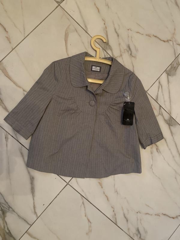 Жакет жіночий у сіру смужку Стильний короткий жакет з коміром та рукавом ¾. Класичний фасон, застібка на гудзик.💎 Стан: новий, з біркою 📏Розмір:46 💈Колір: Сірий. Ціна договірна.