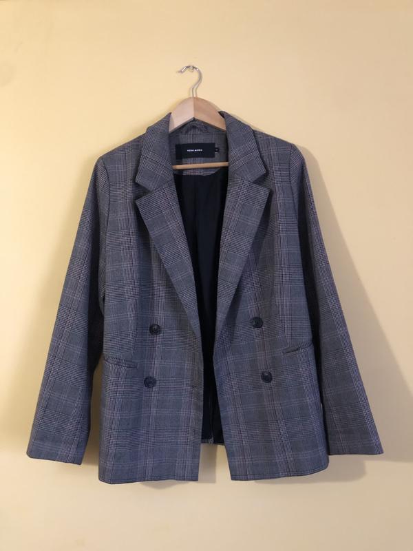 Піджак в ідеальному стані , лише на підкладці зашито по шву , на останньому фото показала . Довжина 70 см Рукав від плеча 63 см Напівобхват грудей ( під руками) 48 см