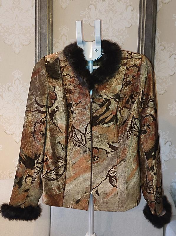 піджак з натуральною опушкою. розмір 42 євро. відмінний стан без дефектів. по типу як гобелен. dana collection. річ може мати сторонній запах обробки секонду.