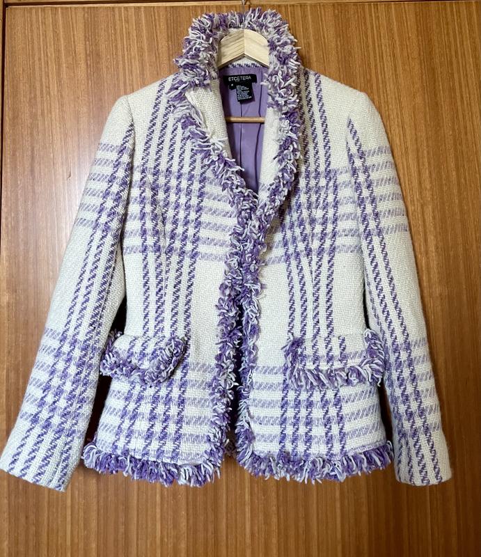 Жакет, піджак Etcetera, 60% вовна, розмір S, білий та фіолетовий колір, ціни на піджаки цього бренду 400-500 $