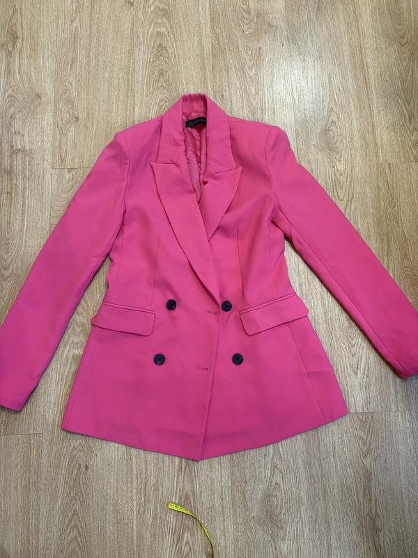 Класичний дворядний подовжений піджак рожевого кольору від бренду Dilvi woman Розмір 44 Довжина 80 см Рукав 64 Ст 40см