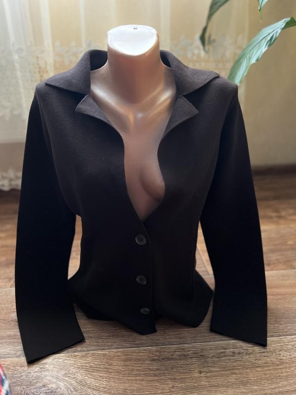 Прямий шерстяний жакет на 2 ґудзика прямий темно коричневого кольору, рукав трьохчетвертний