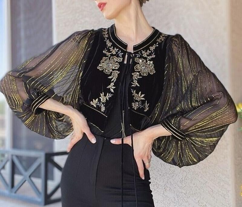 zara 6895/248/830 Довжина 42 см півобхват знизу 40 см довжина рукава від коміра 66 см колір чорний тканина оксамит з підкладкою. Рукави широкі, напівпрозорі Стан ідеальний