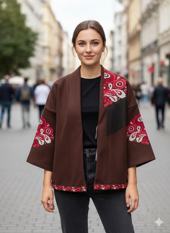 Піджак-накидка з еко-кашеміру На зав'язках, укорочений рукав. Без підкладки арт5563 Розмір S на ог до 90-92, Розмір M на ог до 96-100, Розмір L на ог до 106-112