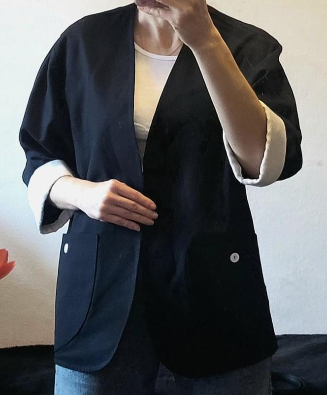 Жакет зі 100%-ого льону з білими манжетами. Дуже цікавий та незвичний. Розмір - S. В ідеальному стані. Заміри за запитом.