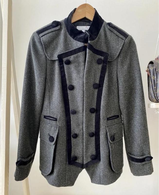 Стильний жіночий піджак від Per Una в ідеальному стані. Особливості: • Колір: сірий з контрастними темними деталями • Матеріал: поліестер • Розміри: S, M • Двобортний крій з декоративними гудзиками • Класичний комір та манжети • Приталений силует Заміри: • Плечі: 37 см • Груди: 44 см • Талія: 40 см • Низ: 49 см • Довжина рукава: 60 см • Довжина виробу: 68 см Відправка: Нова пошта, Укрпошта, Rozetka
