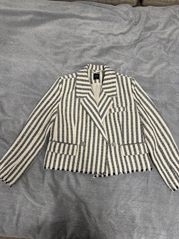 Жакетик укорочений в ідеальному стані, одягала для відео 2 рази. На підкладці, має фактуру твідового піджака. Може стати прекрасним доповненням а свято особливо на Новий рік.