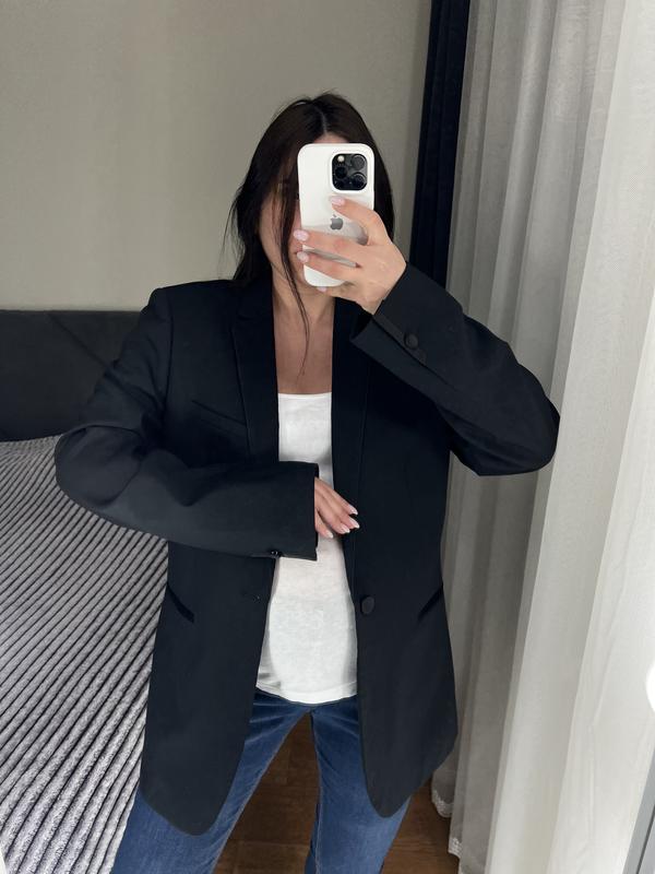 Ідеальний стан без дефектів 💙 Супер сідає, чорний базовий оверсайз. На один ґудзик на підкладці. Розмір 40, підійде на Л. Довжина 76см. По грудях 54см + 4см. Талія пів обхват 50см. Рукав 64,5см. 68% поліестр, 32% віскоза. ___________________________ ✅Відправляю: новою поштою, укр поштою, meest, Rozetka. Накладний платіж по предоплаті 2️⃣0️⃣0️⃣грн. 💸💰Ціна БЕЗ ТОРГУ та кінцева! 💰💸 Підписуйтесь на оновлення 🔥