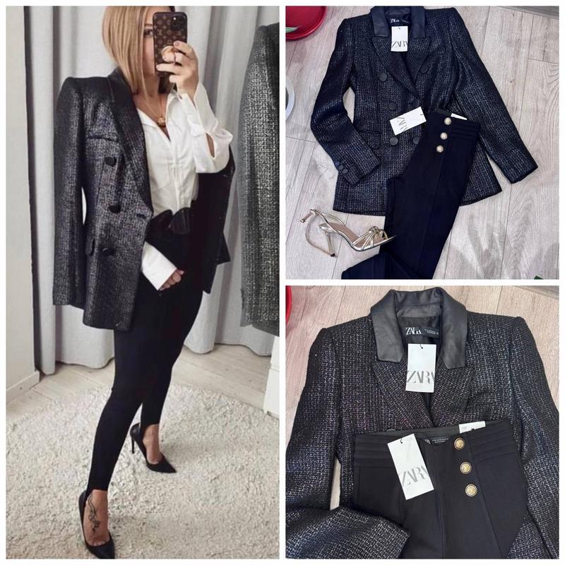 Набір Zara на розмір XS Верх твідовий жакет з мікро блиском, новий, комірець з кож зама Довжина 68 см, ПОГ 38 см, талія йде завужена, ідеально її підкреслює Низ нові трикотажні леггінси довжина 96 см, ПОТ 33 см, ПОБ 42 см ціна за все 1800 грн! Продажа набором!