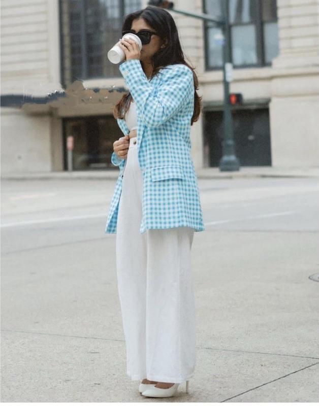 Піджак Zara у клітинку. Блейзер з довгими рукавами та вираженими плечима, з легкої тканини, на підкладці, чудово підходить для весни та літа. Кишені з клапанами спереду, астібка на ґудзики. 💫 Стан: ідеальни 💫 Розмір: XL 💫Склад: 80% віскоза, 20% льон, підкладка100% ацетат 💫 Заміри: довжина 76, плечі 45, пог 56, пот 56, пос 60, рукава 61.