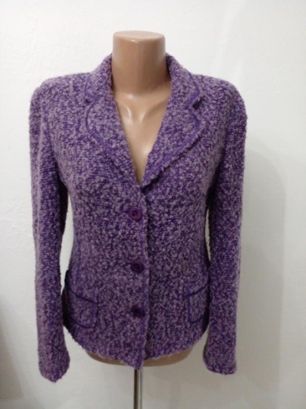Без слідів носіння та нюансів, без підкладки, 12% вовни, тканина типу трикотажу, трохи тягнеться, розмір вказано С. плечі-40-42 пог-48 пот-40 поб-48-49 рукав-60-61, біцепс-17 довжина-60