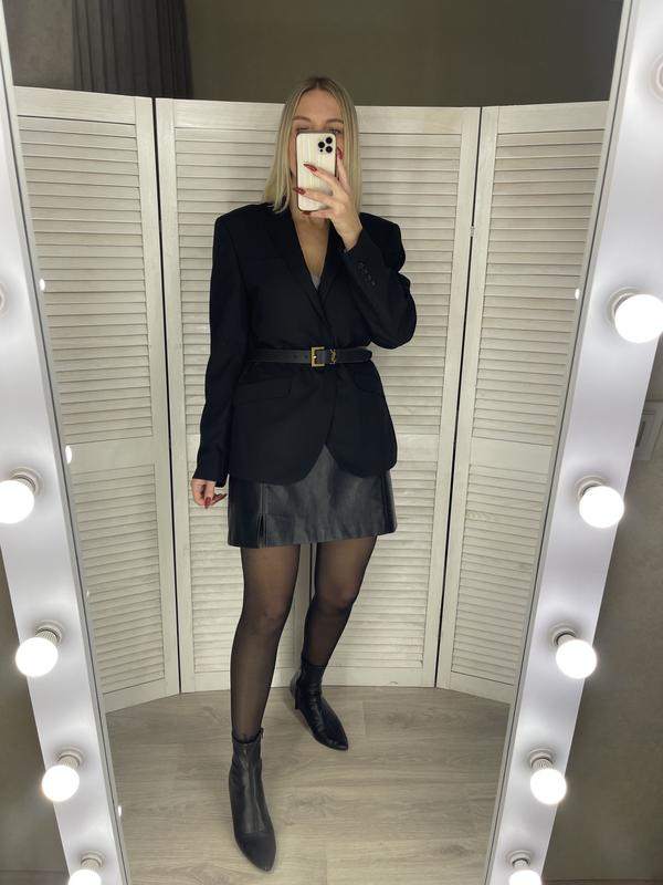 Чорний , структурований піджак прямого фасону 🌿розмір : L - груди або ширина по спинці ПО 59, довжина 70, рукав від горловини 81 має сидіти трошки вільно