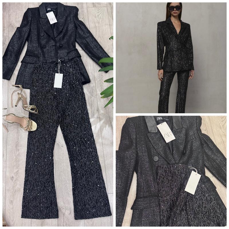 Набір Zara на розмір XS/S Верх твідовий жакет з мікро блиском, новий, комірець з кож зама Довжина 68 см, ПОГ 38 см, талія йде завужена, ідеально її підкреслює Низ брючки з люрексом довжина 96 см, ПОТ 33 см, ПОБ 42 см ціна за все 1800 грн! Продажа набором!