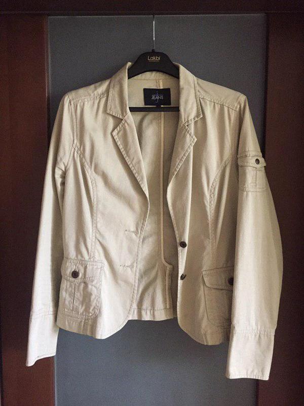 Якісний піджак від бренду Jasper Conran із щільного котону . Класний , стильний , зручний , практичний , добре виглядає . Вдалого крою і кольору . Піджак на всі часи . Размеруказан 12 , може підійти на М . Орієнтуйтеся на заміри : плечі 40 см по грудях 45 см ( може бути трохи більше , поли піджака в грудях розходяться ) довжина рукава 56 см ( рукав підгорнутий ) , 61см - повна довжина рукава по ширини рукава внизу 11,5 см довжина піджака 57 см . Нюанси : фото 8 - на рукаві є кишеня з клапаном на кнопці , кнопка вирвана , в шкарпетці зовсім непомітно , клапан щільно прилягає до кишені . фото 9 - ззаду на комірі зовсім маленька дірочка , я думала це плямочка і при пранні перестаралася , а це видно було якесь вкраплення .В шкарпетці цей нюанс в очі не впадає . Колір оливковий .