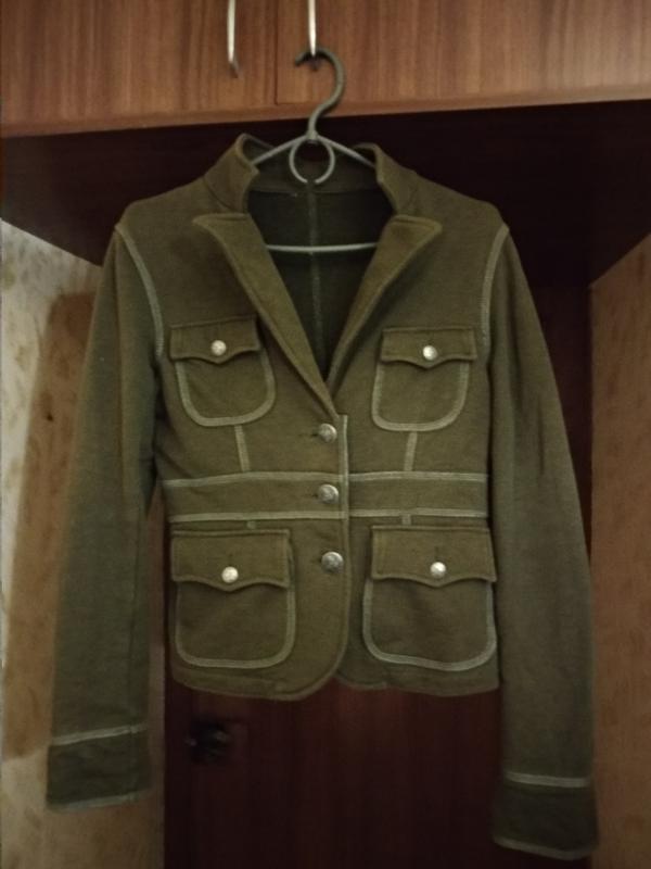 стильний піджачок під військову тематику кольору хакі,на розмір м,44.