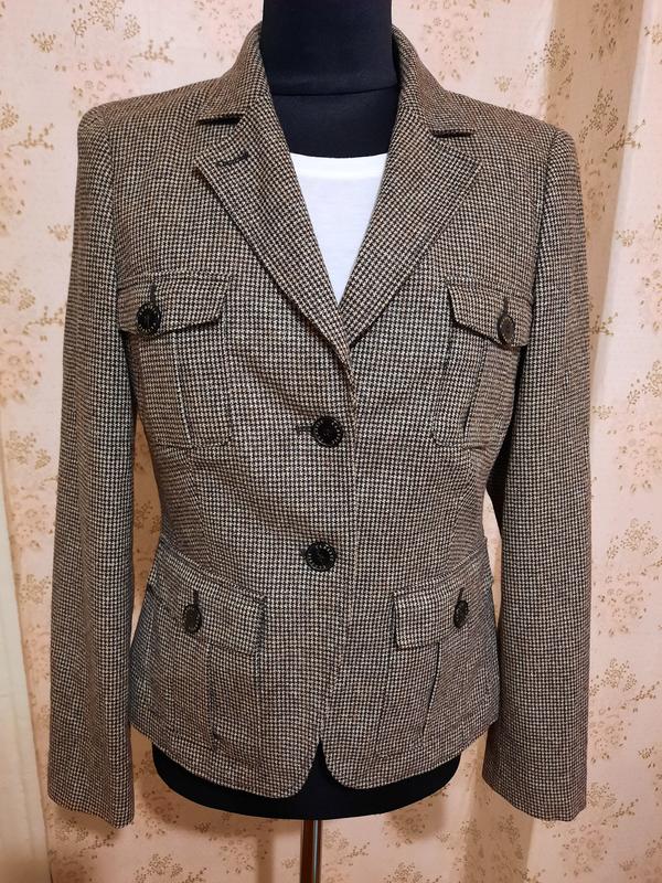 Укорочений,жакет,піджак з накладними кишенями в гусячу лапку.