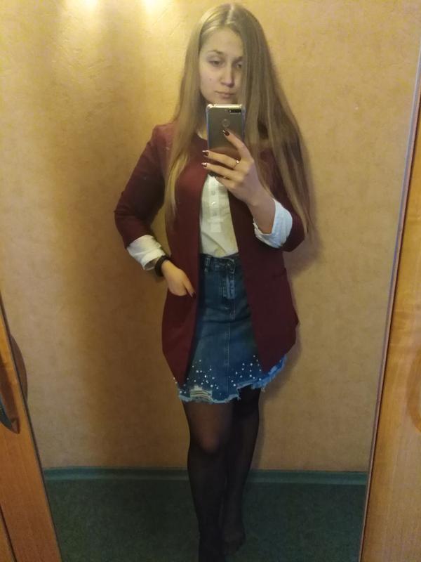 Жакет бордового кольору, без підкладка. Щільна костюмна тканина, 2 кишені, 1 застібка у шиї. Розмір С/М Стан хороший Заміри Довжина 74 Плечі 39 Груди 48