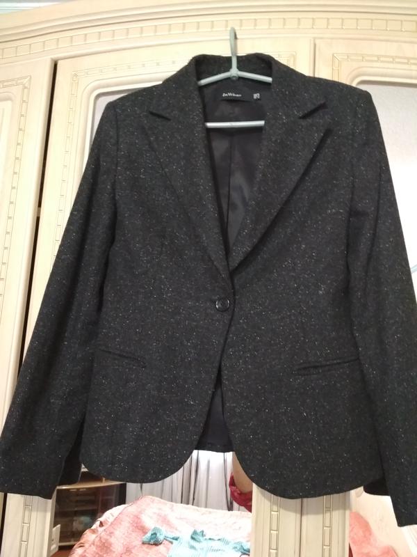 Дуже якісний жакет, у складі шерсть, шовк. В ньому не змерзнете, є кармани. На наш 46, можна і 48 розмір. Жакет класний.