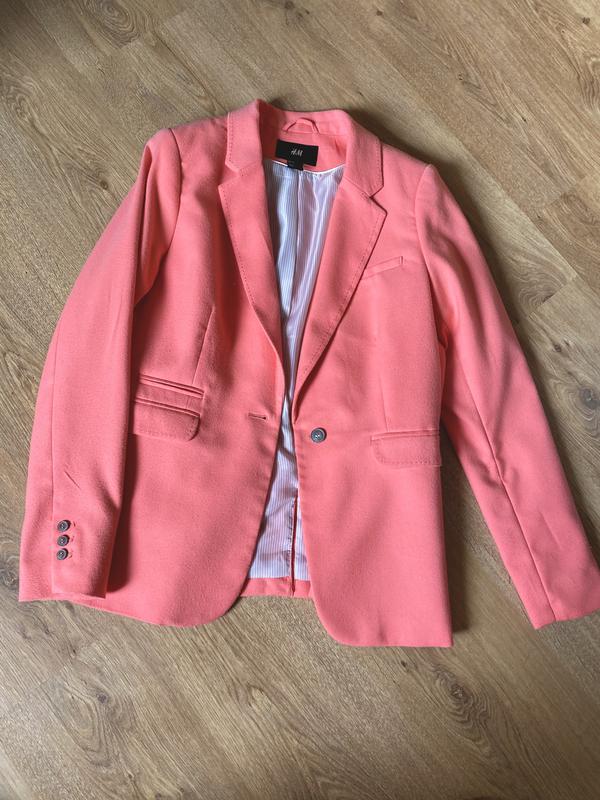 Жіночий піджак у гарному стані! Свіжий лососевий колір, якісна підкладка Плічка, структурований. ПОГ 47 см додаткові заміри при потребі надам! Розмір L Купувала у Франції, носила двічі