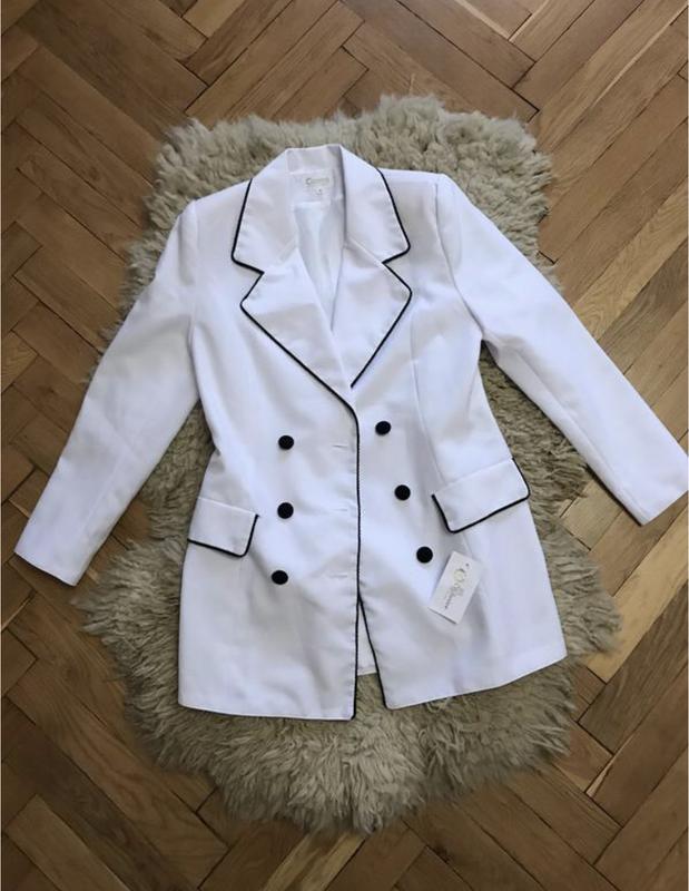 Жіночий білий двобортний піджак з вшитими плечиками, піджак новий з біркою, розмір С-М, заміри скину по потребі