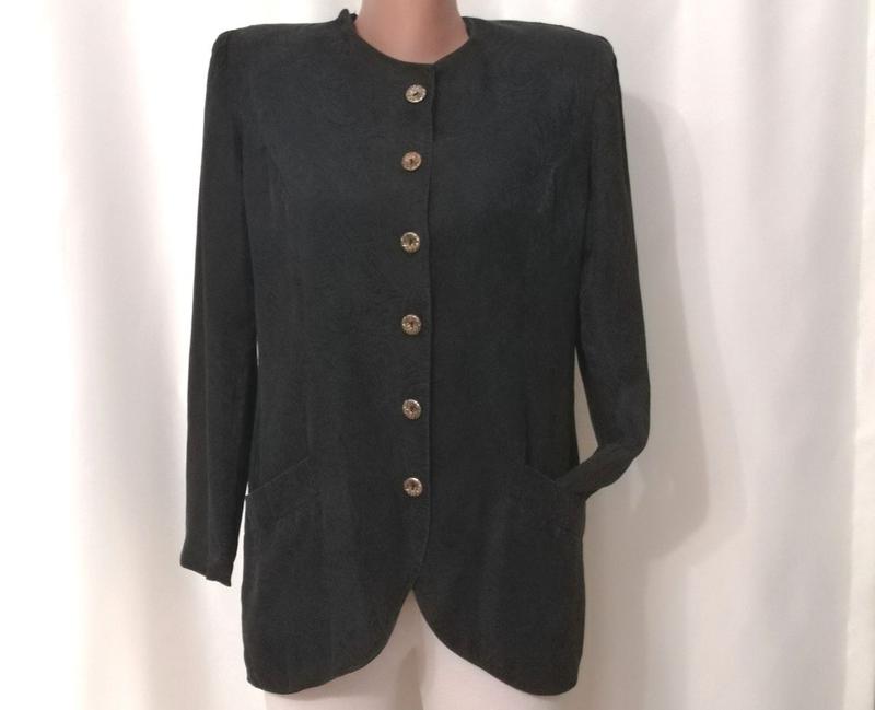 Шёлковый пиджак, в идеальном состоянии. От плеча до плеча 43 см Полуобхват груди 52 см + вытачки Полуобхват бёдер 52 см Длина рукава от плеча 57 см Длина 71 см👇 Отправка производится только после оплаты на карту продавцу 🤝! С уважением сотрудники комиссионного магазина 💐