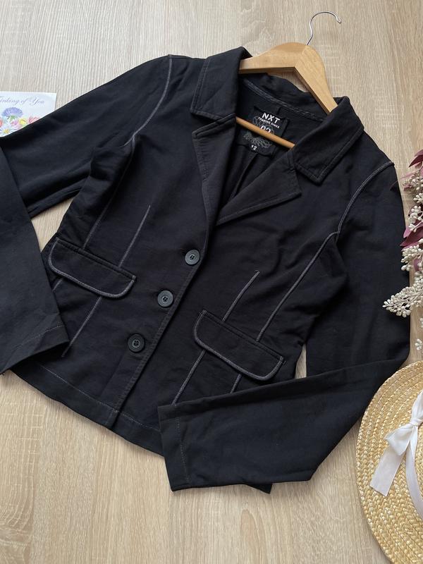 Базовий повсякденний піджак, котонновий, натуральний, тягнеться Гарно дивиться з кросівками і джинсами Має імітовані кишені і шлюфки для поясу Розмір М-Л Заміри: пог 48 пот 40 (можна брати під поясок) рукав 64 довжина 55