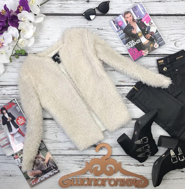 Укорочений жакет з штучної нитки "під баранчика" h&m pp.xs