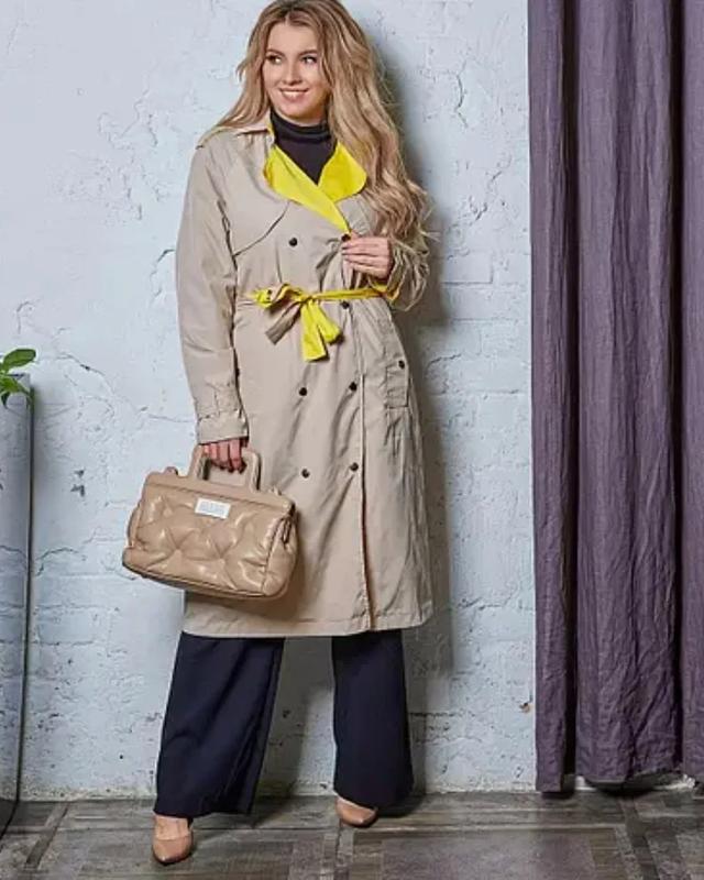 Новый, стильный плащ/тренч с яркой подкладкой Плащевка Размер 46/ 48 Длина 110 Рукав от ворота 74 Пог 51 Поб 57 Застегивается на кнопки Есть 2 кармана