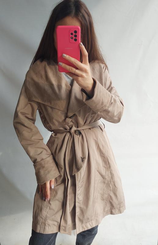 плащ с замшевым воротником и манжетами длина 88 грудь 55 Рукав 66, манжет подкачивается плечи 42 талия 50 Бедра 57 на бирке Л можна М хорошая качественная базовая вещь. дорогой бренд.