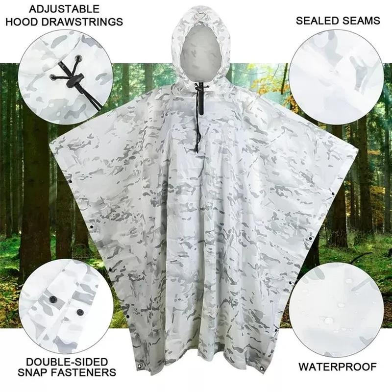 Розмір:універсальний ( 200х145 см ). 100% водонепроникна тканина ріп-стоп плетіння,проклеєні шви, поліестер. Йде у маленькому мішечку Система стяжок на капюшоні та по боках.