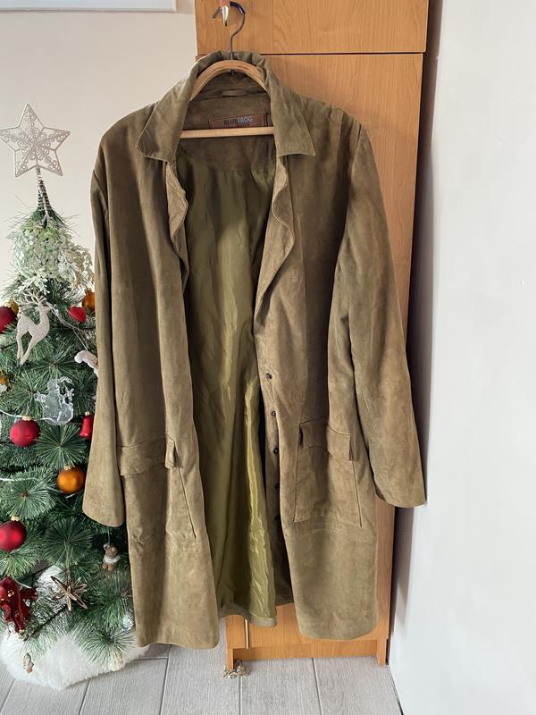 Плащ новый.Колир хаки. ПОБ-60 см. Длина-107. Длина рукава 70 см. Плечи-47 см. Натуральная кожа, мягкая ругательства. Есть дефект (наделишь фото).