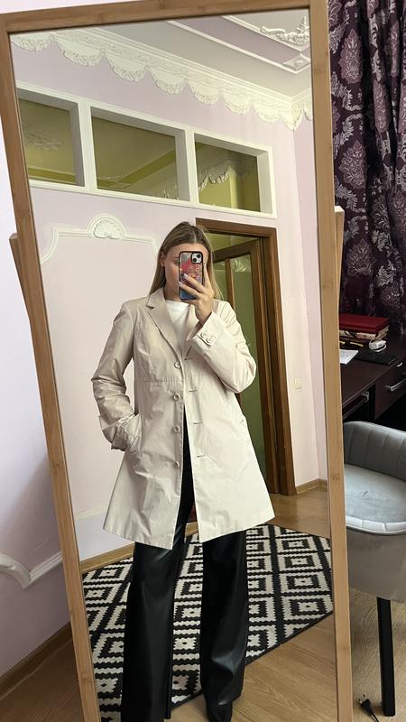 Бежевый плащ до колен, рукава клеш, на подкладке