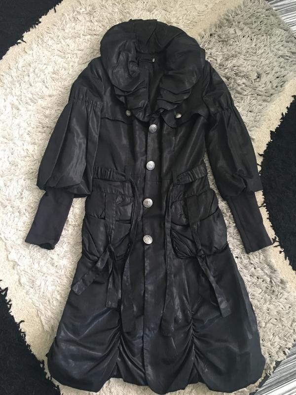 Легкий плащ чорного кольору, розмір 44, довжина 105, є кишені