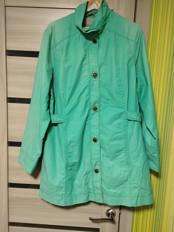Жіночий плащ. Американського бренду Eddie Bauer.XL. Водонепроникний. 64% котон, 36% нейлон. На другому фото вказано незначний ньюанс. Колір трішки інший ніж на фото. Плечі 44. ПОГ 57. ПОТ 53. ПОБ 58. Довжина 90.Рукав 65.