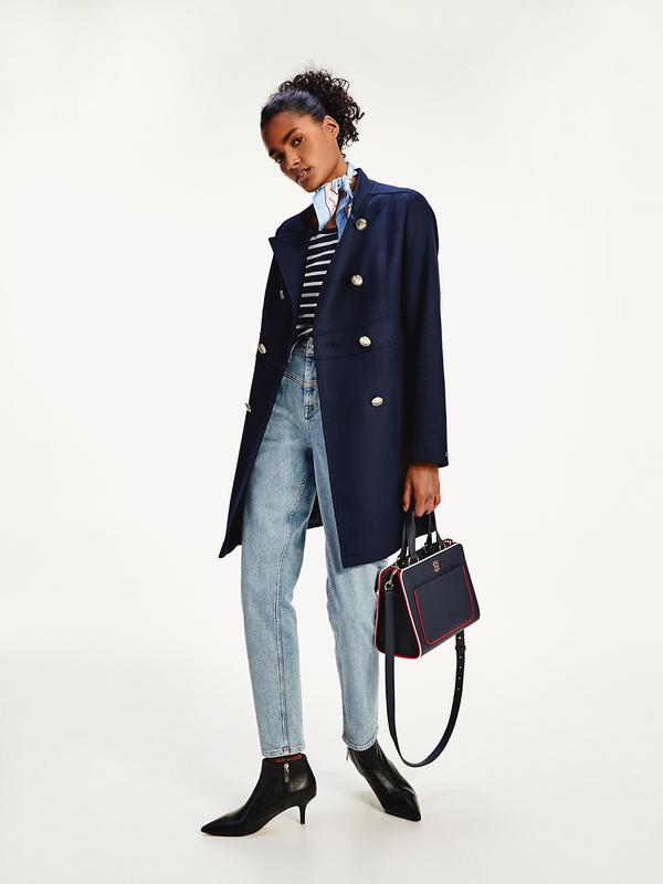 Tренч Tommy Hilfiger 2 (34) XS оригінал. Колір: Desert Sky темно синій. DOUBLE-BREASTED MILITARY COAT. 71% поліестер, 26% віскоза, 3% еластан. Повна вартість була 280 дол. Є в наявності. Довжина 84 см, НОГ 46,5 см, в поясі 43,5 см, НОБ 49 см, плечі 38 см довжина рукава 63 см.