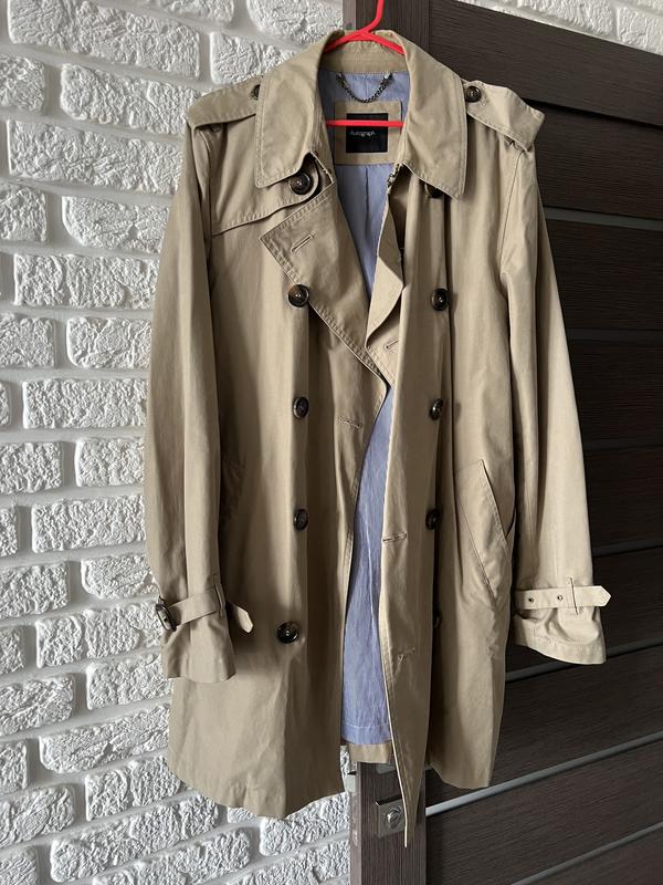 Дуже класний якісний тренч Marks&Spencer, тканина цупка, є підклад. Єдиний мінус - потребує прасування. Немає бірки з розміром але схоже на L.