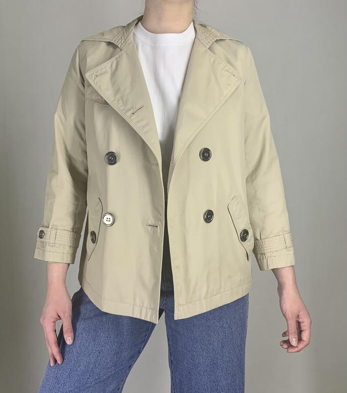 Трендовий вкорочений тренч бежевого кольору На XS-S Довжина 63 см, довжина рукава 54 см, ширина плеч 37 см Стан ідеал