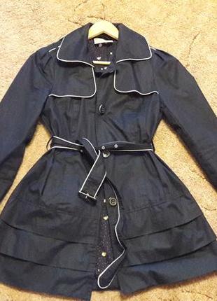 Темно-синій плащик, практично новий, одягала пару раз тільки. Розмір М