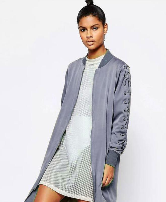 Крутий подовжений брендовий бомбер story of lola asos зі шнурівкою s-m