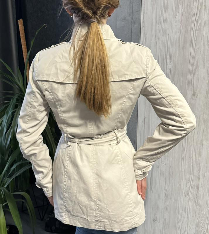 Стильний вкорочений тренч. Заміри:плечі - 38см, довжина - 75см, довжина рукава - 64см, півталія - 40см