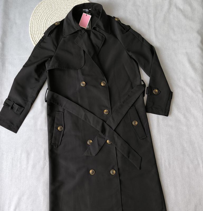 Трендовий чорний тренч. Розмір UK6- XS/S Плечі - 38 Довжина - 112 Рукав - 60 ПОГ - 48 ПОТ - 48 ПОС -50 Склад тканини: поліестер