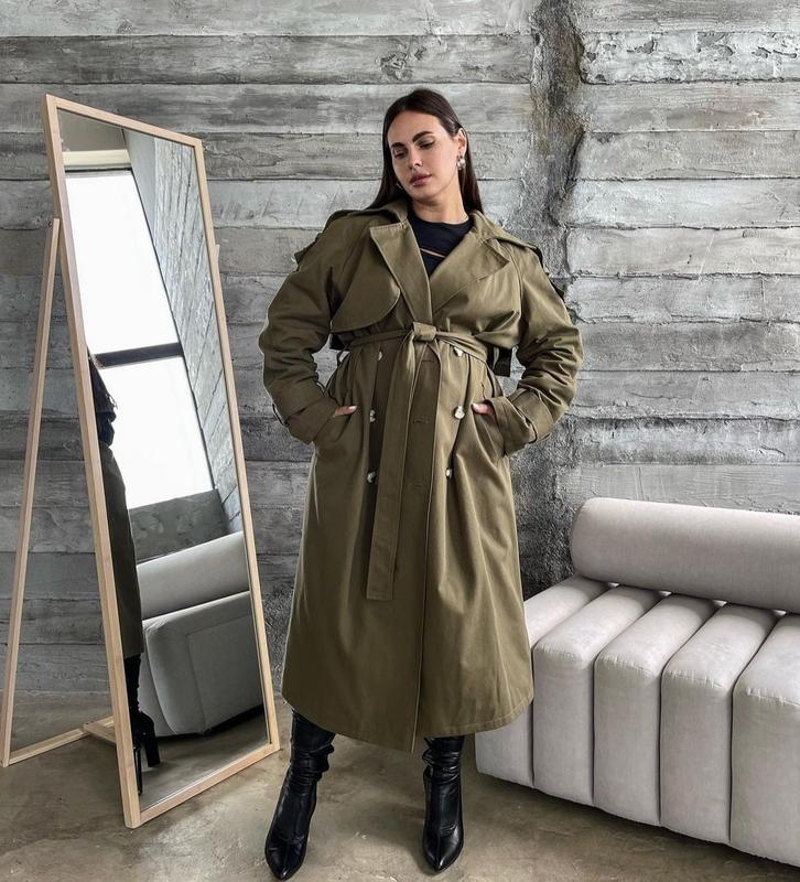 Очень классный тренч, цвета хаки, новый, размер 5xl, на наш 56-58. ОГ 118-122, ОТ - 98-102, ОБ -126-130. Не взрослый по размеру, я знаю с понижкой, украинский бренд). , не дает пояса, поэтому отявляю со скидкой).