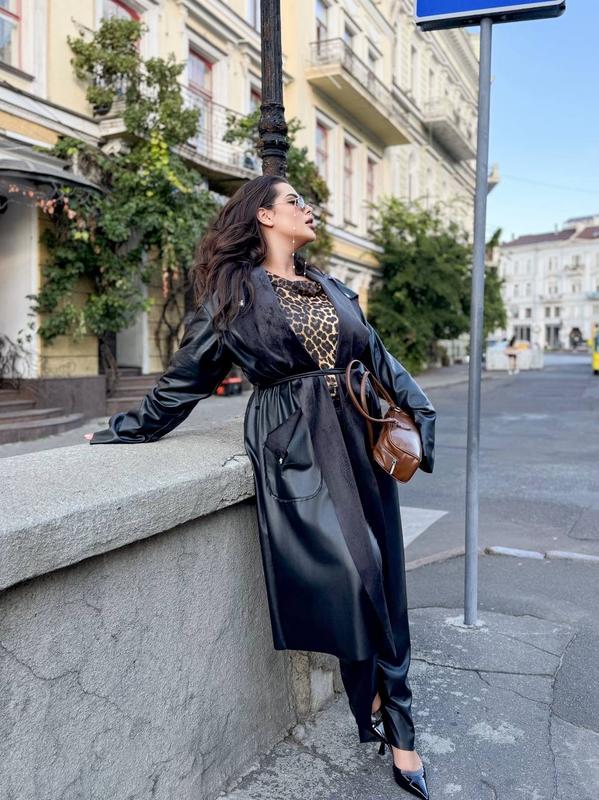 🛍Тренч Кожаный Арт 7021 🔥Размеры: 42-44, 46-48, 48-52 🔥🔥Размеры: 54-58, 60-64- 1400 грн Модель на запах без застежек фиксируется с помощью пояса. Изготовлена из искусственной кожи на велюре (приятная на ощупь, мягкая, тёплая ткань). Рукава можно подвернуть - этим регулируется длина от 70-55 см (от плеча). Длина изделия 115 см. 🔥Размеры: 42-44, 46-48, 48-52 🎈42-44: на ОГ и ОБ 75-94 см (115 см по изделию без учета запаха) 🎈46-48: на ОГ и ОС 94-106 (126 см по изделию без учета запаха) 🎈50-52: на ОГ и ОБ 107- 120см (135 см по изделию без учета запаха) 🔥🔥Размеры: 54-58, 60-64 ☄️54-58:ОГ и ********** см - по изделию без учета запаха) ☄️60-64: ОГ и ********** см - по изделию без учета запаха)