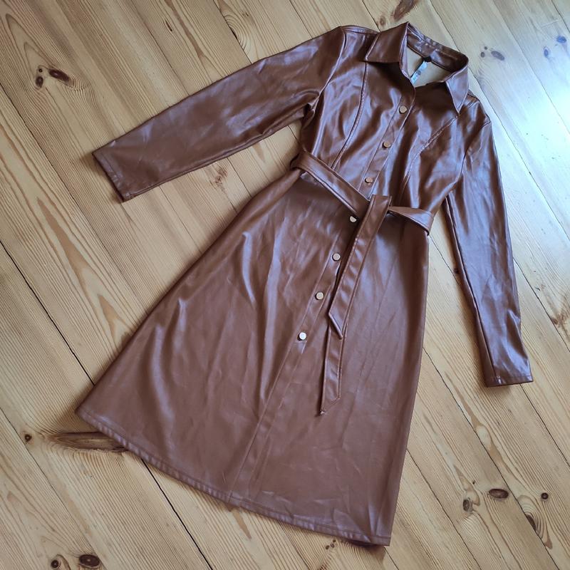 Классная вещь в новом состоянии, экокожа. Светло-коричневого цвета. Можна прати. Длина 105 см, под рукавами 49, ПОТ 43, ПОС 52, рукав 59, плечи 42 см.
